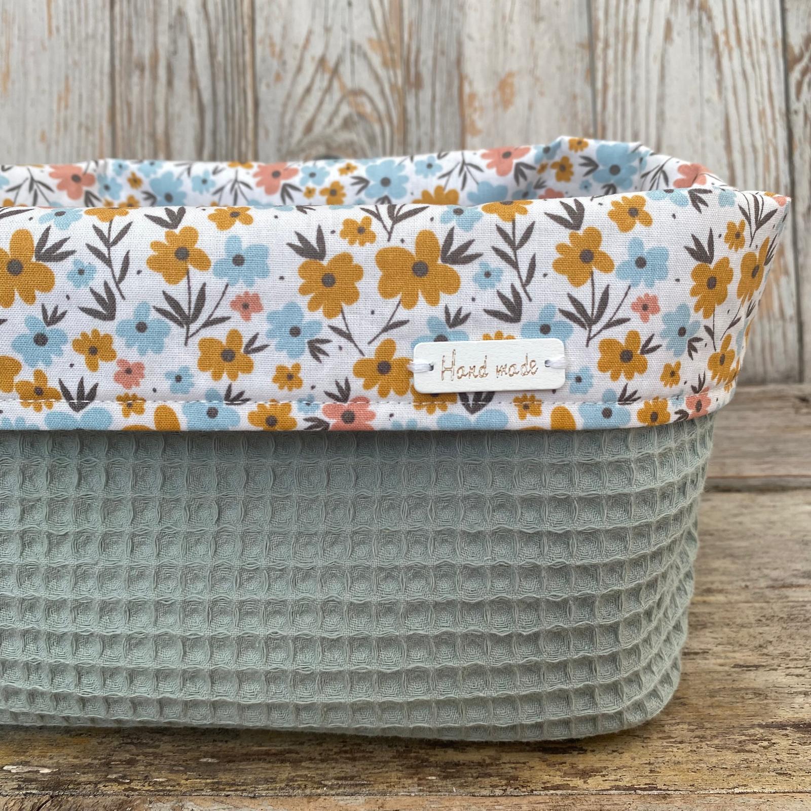 Ben je op zoek naar een unieke en praktische oplossing voor de babykamer? Het Commodemandje Flower Power Oudgroen is een prachtige combinatie van functionaliteit en design. Dit handgemaakte mandje met bloemenprint en oudgroene wafelstof is zowel ideaal om de babykamer netjes te houden als overzichtelijk.