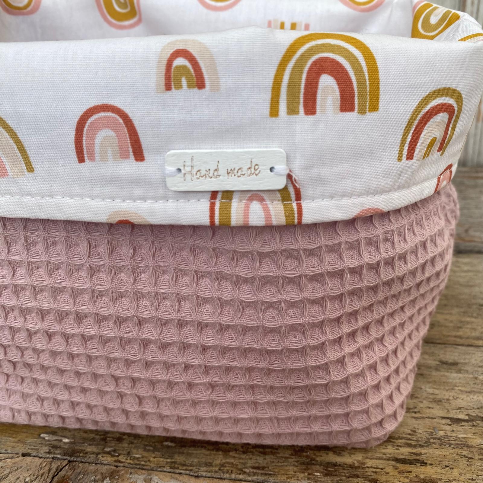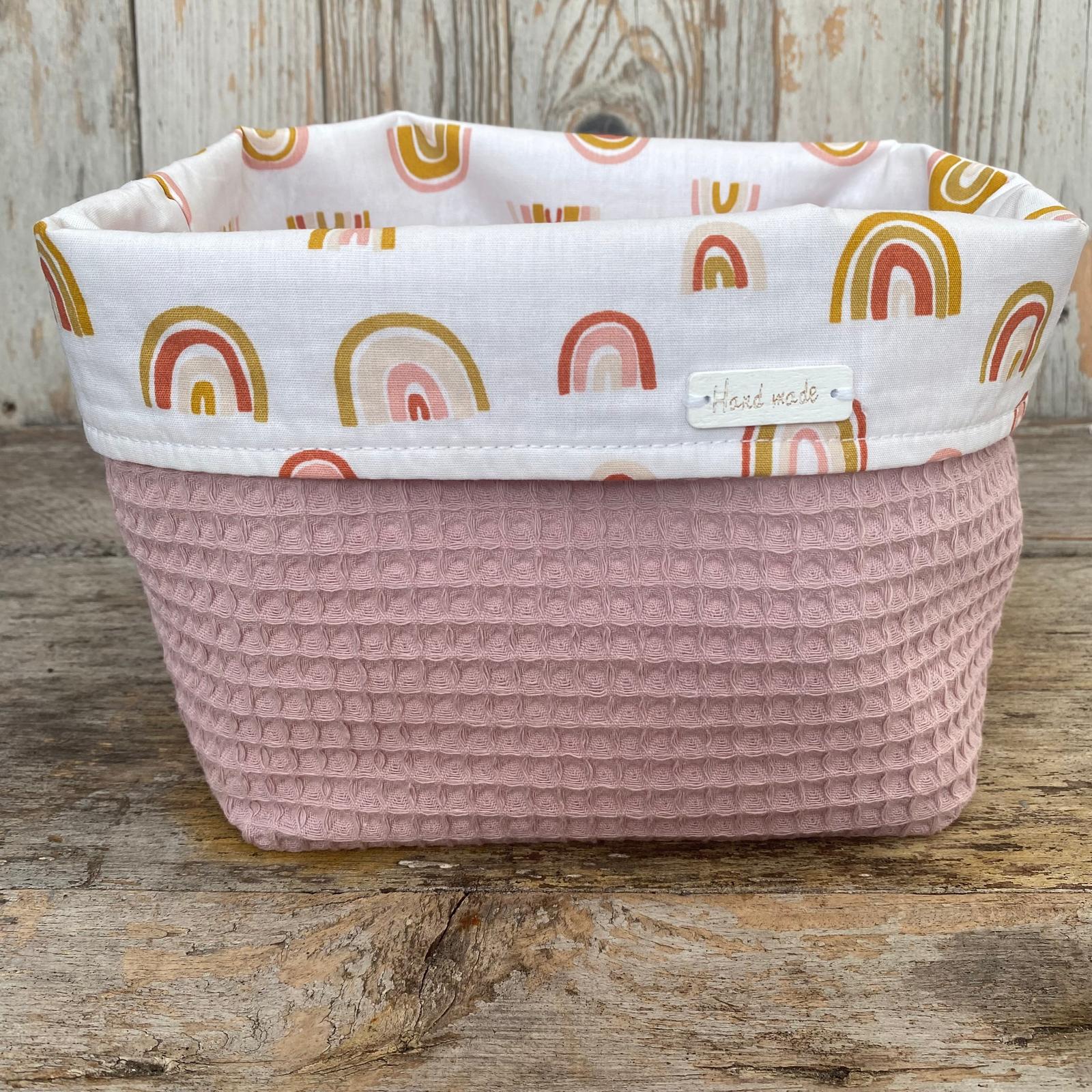 Ben je op zoek naar een unieke en praktische oplossing voor de babykamer? Het Commodemandje Roze Regenboog Oudroze is een prachtige combinatie van functionaliteit en design. Dit handgemaakte mandje met regenbogen en oudroze wafelstof is zowel ideaal om de babykamer netjes te houden als overzichtelijk.