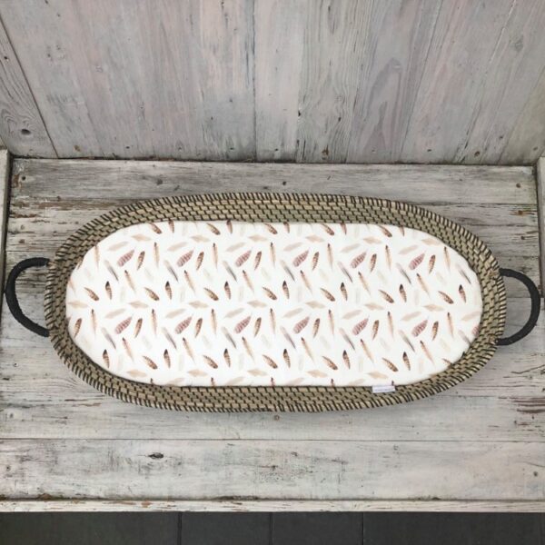 Hoeslaken verschoonmand off white met bruine veren past om het matras voor in de verschoonmand van Kwantum, Olli Ella Reva en de reiswieg. Wij hebben deze waterafstotende matras speciaal ontwikkeld voor deze verschoonmanden.